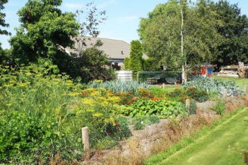 Kippen zorgen voor een vers eitje, in de moestuin groeit van alles en dan zijn er nog de bessenstruiken en druivenranken.