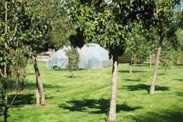 Hier werken de bijen, zij zorgen voor een goede bestuiving van de fruitbomen in de boomgaard.